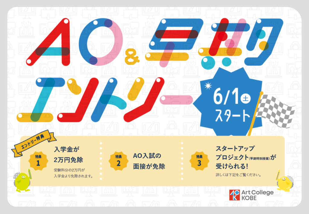 アートカレッジ神戸では6/1(土)からAO・早期エントリーの受付が開始します📢